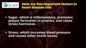 • Sugar, which is inflammatory, promotes plaque formation in arteries, and raises stress hormones.