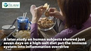 A later study on human subjects showed just seven days on a high-salt diet put the immune system into inflammation overdrive, just as if it were encountering an infection or in the throes of an autoimmune attack. An interesting side note: The high-salt diet used in the study represented salt intake for the average American.
