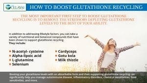 Booting your glutathione levels with an absorbable form and then supporting glutathione recycling can significantly help you manage autoimmune disease, inflammatory disorders, chemical sensitivities, food sensitivities, and more.