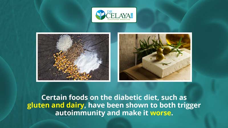Certain foods on the diabetic diet, such as gluten and dairy, have been shown to both trigger autoimmunity and make it worse.