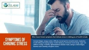 This is true in many, but not all cases. Other lesser-known symptoms that indicate stress is robbing you of health include: constant fatigue, energy crashes, difficulty recovering from stressful events, headaches, trouble falling and staying asleep, trouble waking up, emotional mood swings, sugar and caffeine cravings, irritability, lightheadedness between meals, eating to relieve fatigue, dizziness upon standing, and gastric ulcers.