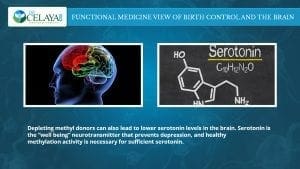 Depleting methyl donors can also lead to lower serotonin levels in the brain. Serotonin is the “well being” neurotransmitter that prevents depression, and healthy methylation activity is necessary for sufficient serotonin.