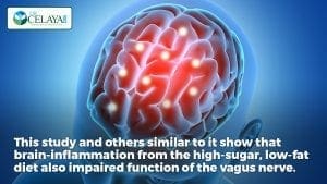 The excess fat accumulated around the rats’ livers was similar to the liver damage caused by heavy alcohol use. This study and others similar to it show that brain-inflammation from the high-sugar, low-fat diet also impaired the function of the vagus nerve. This is a nerve that runs between the brain and the gut and is vital to both healthy brain and gut function.