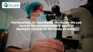 Fortunately, in functional medicine we can screen for autoimmunity against multiple tissues in the body at once. Knowing an autoimmune reaction is causing your symptoms can remove the mystery and bring significant peace of mind. It is confirmation your health symptoms are real and proof you are not a whiner or hypochondriac. If you would like to know more about your possibility of having autoimmunity You can schedule a FREE 15 minute consultation with Dr. Celaya.