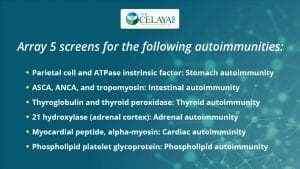 Array 5 screens for the following autoimmunities: