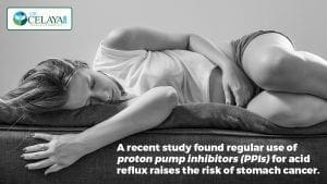 A recent study found regular use of proton pump inhibitors (PPIs) for acid reflux raises the risk of stomach cancer. PPI users (Prilosec, Prevacid) in the study had twice the risk for stomach cancer compared to those who used H2-receptor acid reducing drugs (Tagamet, Pepcid).