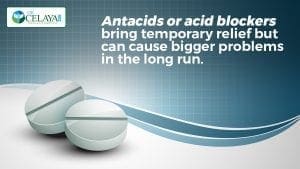 Antacids or acid blockers bring temporary relief but can cause bigger problems in the long run. Without stomach acid to trigger the release of enzymes, digestive hormones, and emulsifiers, nutrient absorption suffers and the digestive tract is more prone to infection, inflammation, and damage.