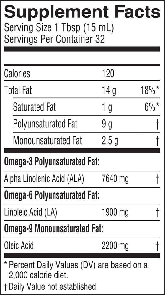 High in ALA Omega-3 fatty acid: 7,640mg per Tbsp • USDA Organic, Non-GMO verified, Gluten Free, Kosher • Fresh, cold-pressed and protected from air and light • Enjoy right off the spoon or mix into salad dressings, yogurt, oatmeal or smoothies • Barlean’s is the #1 selling organic flax oil