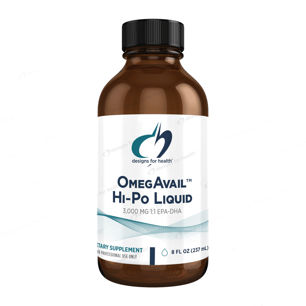 OmegAvail™ Hi-Po Liquid is our highest concentration omega-3 fatty acid formula in liquid form, providing 1,500 mg eicosapentaenoic acid (EPA) and 1,500 mg docosahexaenoic acid (DHA) per 1-teaspoon serving in a 1:1 ratio. This formula is optimal for long-term supplementation to support the foundational needs of omega-3. A balanced 1-to-1 ratio of EPA to DHA is similar to that found naturally in seafood.